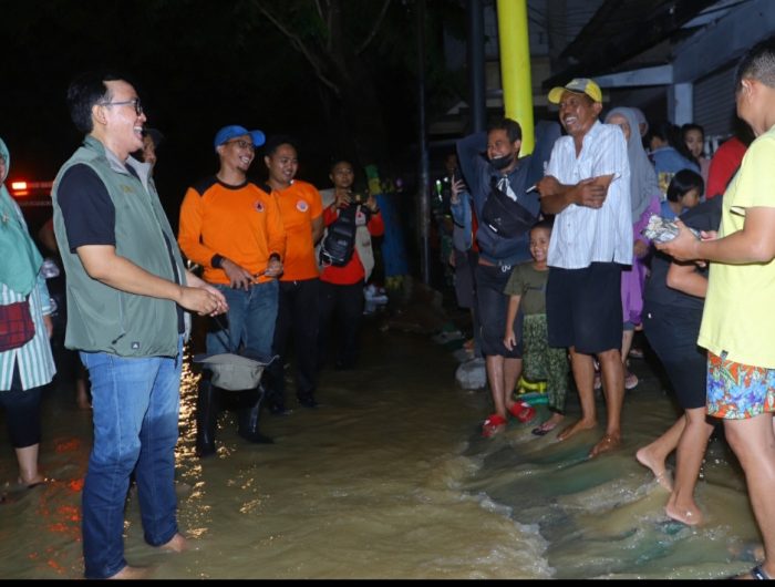 Bupati rela berjalan kaki melewati jalan yang tergenang air untuk menyapa warganya, serta mencari solusi atas musibah tahunan yang terjadi setiap musim penghujan tersebut dengan menyerap aspirasi warga secara langsung.