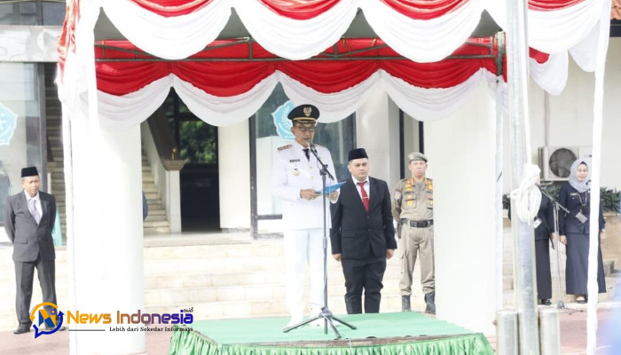 Bupati Pamekasan, Dr. KH. Kholilurrahman, yang bertindak sebagai pembina upacara, membacakan sambutan Menteri Dalam Negeri (Mendagri) Muhammad Tito Karnavian.